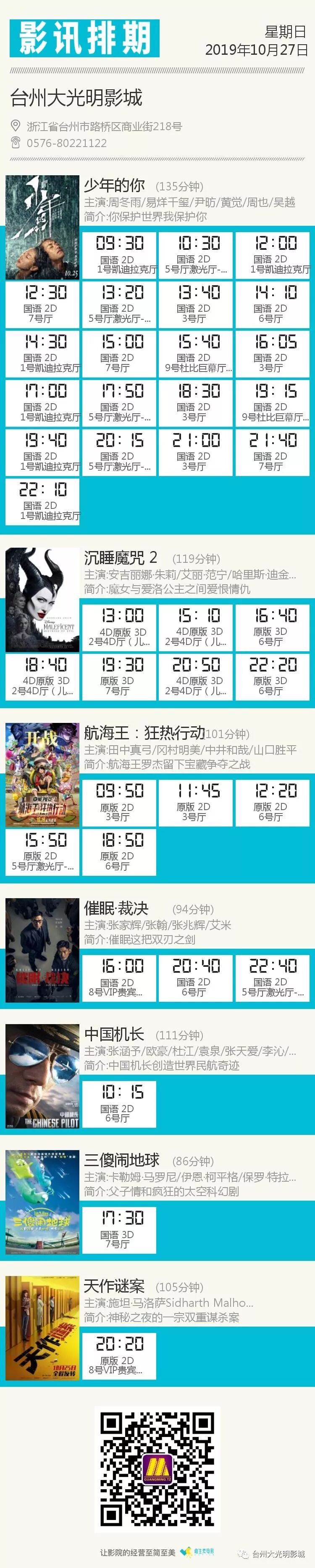 【影讯】10月27日/10月28日〖场次以票房大屏幕为准〗