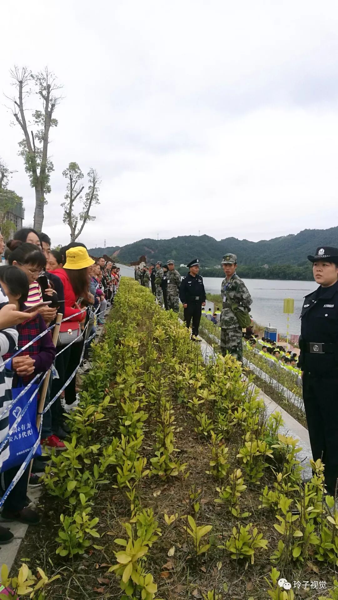 细雨蒙蒙,市民还在坚持观看比赛。
