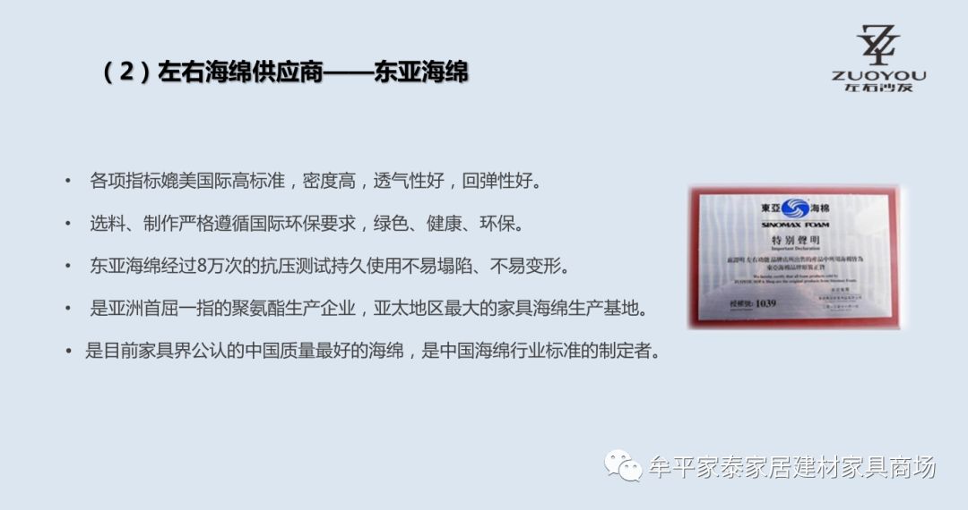 左右家私立足于全球风尚的前沿——深圳,一直致力于国内外家具文化与技艺的融汇与创新,公司3300多名中、高级技术和管理人才,为全球用户源源不断的输出“设计时尚,做工精细,选料考究,品质精良”的产品。左右家私一直“以专业为事业”,引领中国客厅文化发展,在消费者中口碑斐然。 以“绿色、环保、舒适”著称的左右家私,严格按照国际质量标准实施品质管理,公司已通过多个国际及国家级专业认证,包括ISO9001质量管理体系、国际标准产品标志、中国质量环保产品认证、中国环境标志产品认证。
