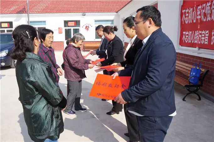 为9名受助群众代表发放福彩救助金