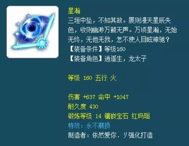 秋水人家:扇面上所画《秋水人家图》出神入化,栩栩如生;展扇更可进入其中,游山玩水,身临其境。其中定有道家仙法无疑。120——150级强化打造造型。