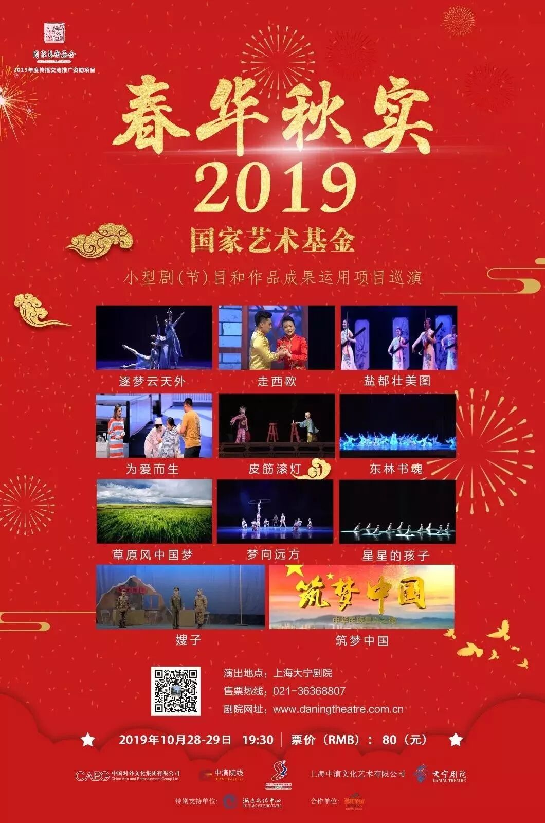 节目单群舞《逐梦云天外》小戏曲《走西欧》四川竹琴《盐都壮美图》戏剧小品《为爱而“生”》木偶《皮筋滚灯》群舞《东林书魂》歌曲《草原风中国梦》杂技《梦向远方—绳技》群舞《星星的孩子》小戏曲《嫂子》歌曲《筑梦中国》 *演出节目及顺序请以现场为准演出信息春华秋实2019——国家艺术基金小型剧(节)目和作品成果运用项目巡演时间:10月28、29日 19:30地点:大宁剧院票价:80元点击文末“阅读原文”立即购票