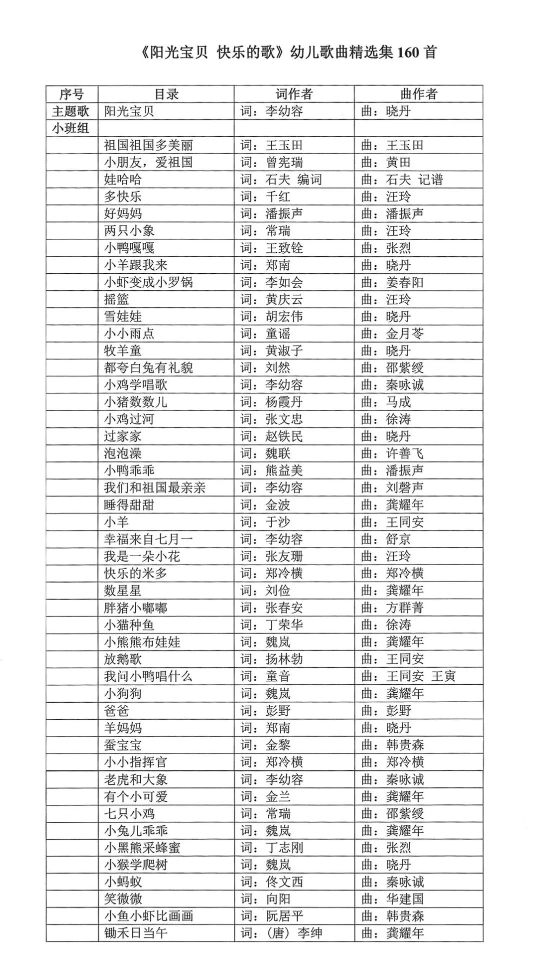 4.大赛规定,每位参赛选手必须演唱组委会推荐的选自《阳光宝贝·快乐的歌-幼儿歌曲精选集160首》及历届大赛幼儿组歌曲,选手演唱歌曲为原调。