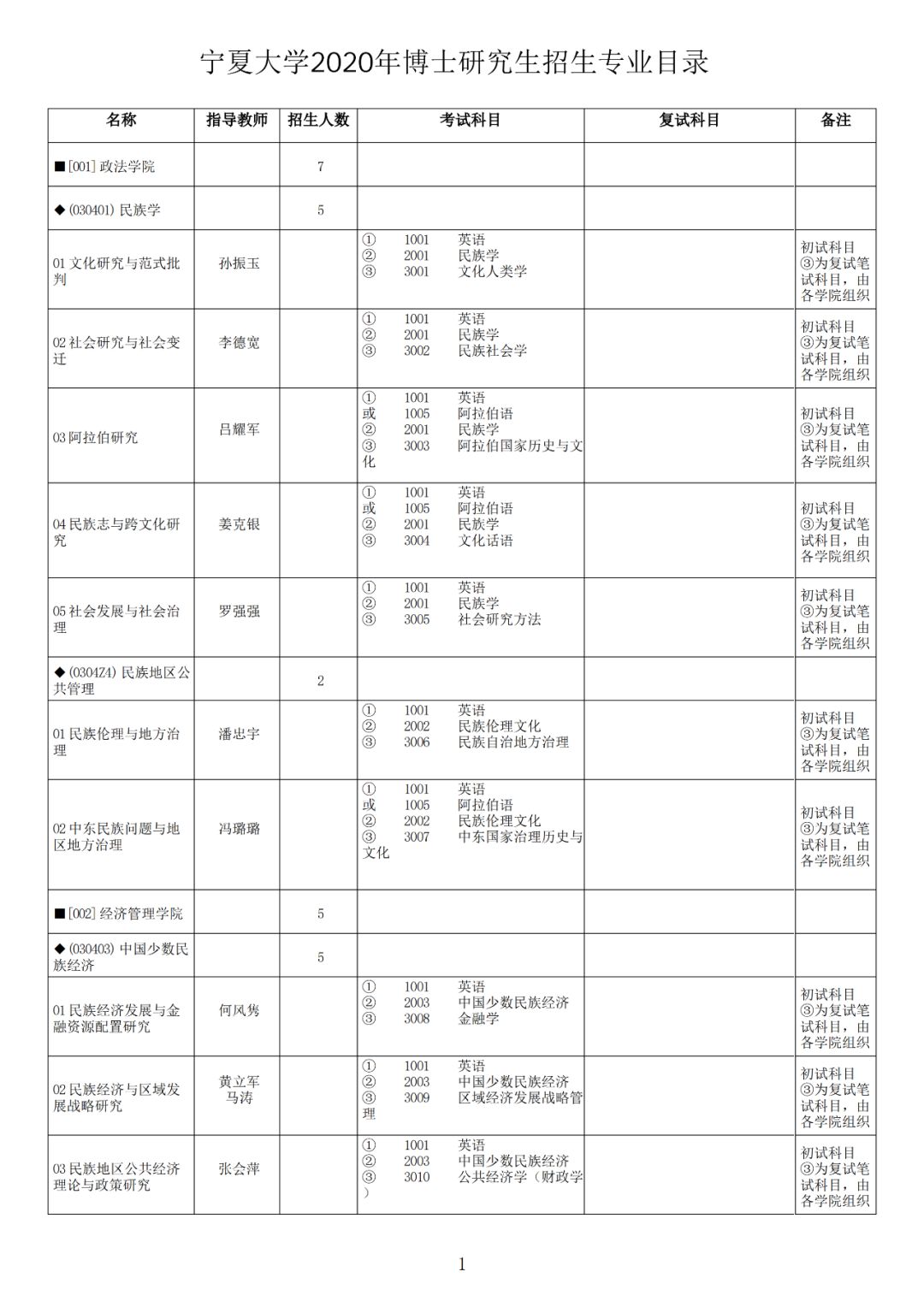 宁夏大学2020年博士研究生硕博连读拟录取名单公示