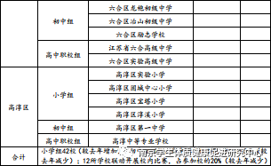 (跆拳道项目10所)六合区金牛湖中心小学、南京市姜家园小学、江宁区江宁中心小学、高淳区淳溪中心小学、南京师范大学附属小学仙鹤门分校、南京市江宁区岔路学校、南京市建邺实验小学、南京市紫东实验学校、六合区励志学校、南京田家炳高级中学
