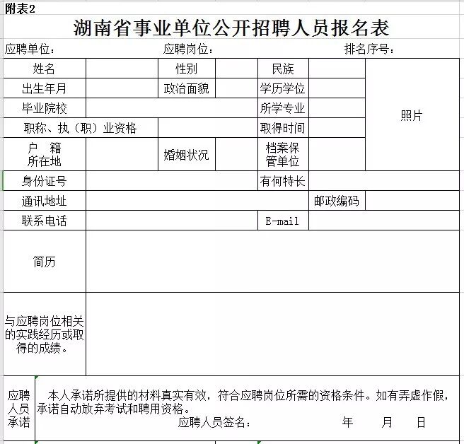 1.个人从网上下载并填好《湖南省事业单位公开招聘报名表》(一式两份);