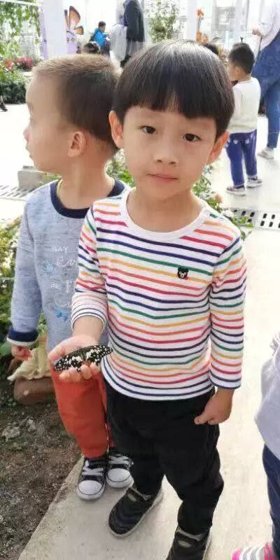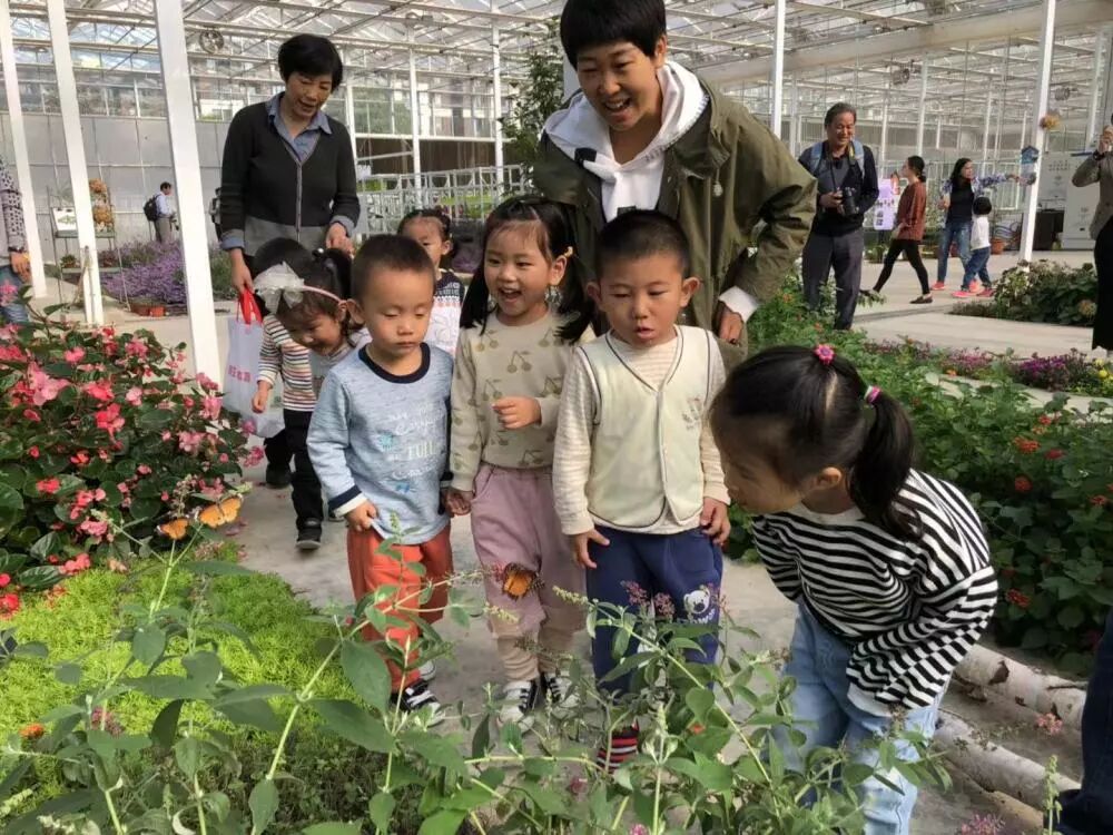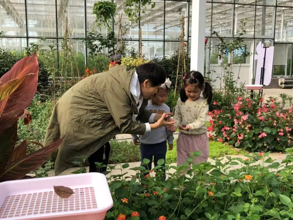 穿过街道,孩子们走进农科院。小班的小朋友来到蝴蝶生态馆,见到美丽的蝴蝶,小朋友们兴奋地拉住老师手,“老师你看!是蝴蝶!”“哇!蝴蝶蝴蝶,蝴蝶在飞!”