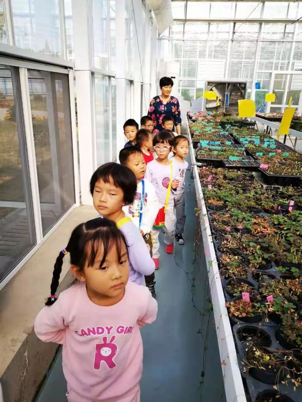 农科院里有蝴蝶生态馆、草莓馆、蔬菜馆、花卉馆等等。小班弟弟妹妹们第一次参观农科院,小手拉小手跟着老师,兴奋中还有点小紧张哩!