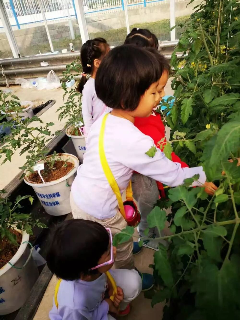 让孩子在田野里中寻找快乐,在自然中获得经验,南师附小钟秀幼儿园充分利用周边社区资源,2019年9月24日上午,幼儿园的老师们带领中小班全体幼儿参观农科院新建成的温室基地。了解生态种植知识,开阔眼界,真正地融入大自然。