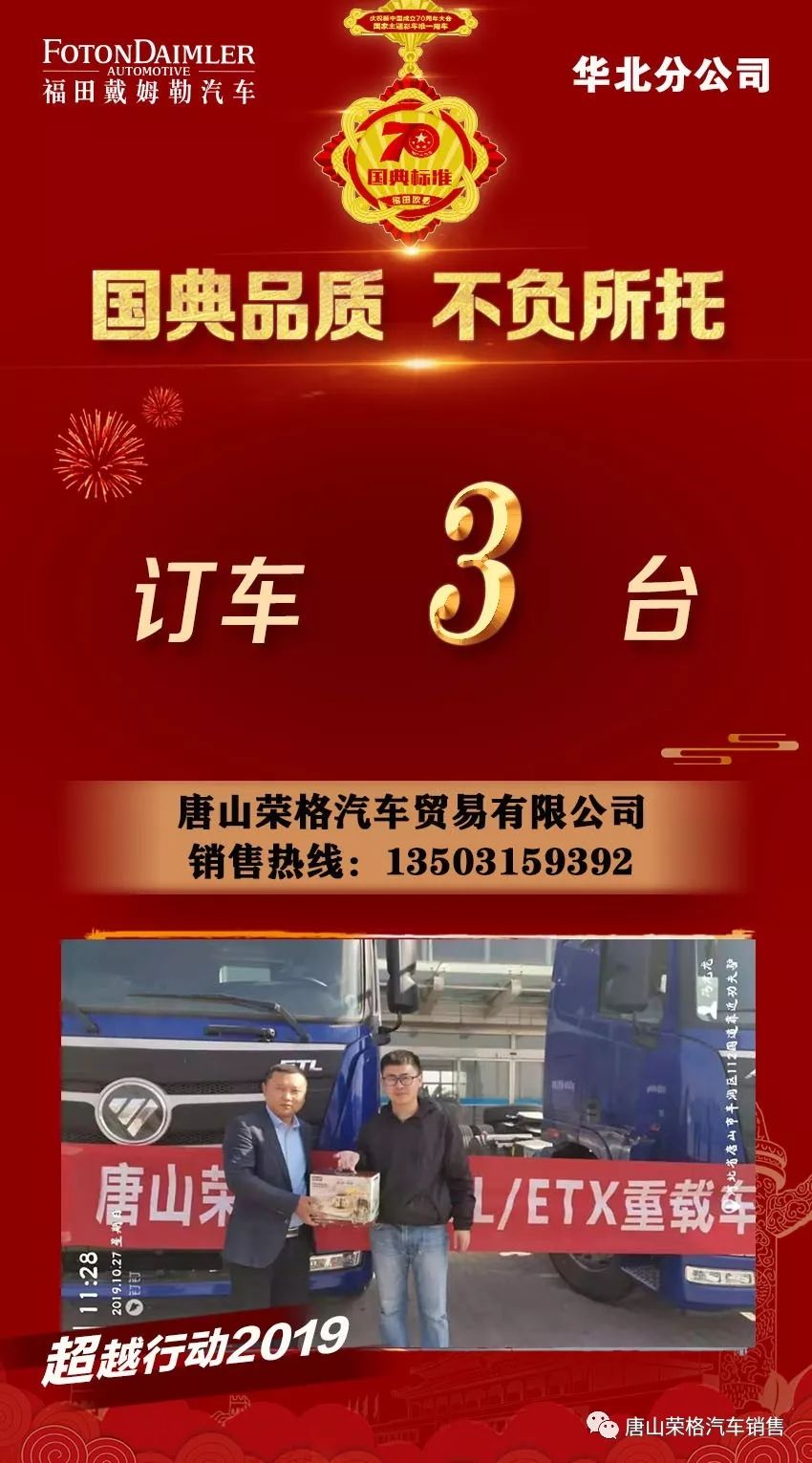 2019年10月27日不忘初心,超越行动唐山荣格GTL/ETX巡展活动圆满成功邀请当地牵引车客户、参加超越行动唐山荣格GTL/ETX巡展活动活动现场订车数量3台,收集客户信息40名