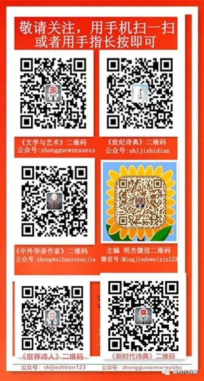 请投稿作者务必加明杰微信和关注《文学与艺术》《世纪诗典》《中外华语作家》《世界诗人》《新时代诗典》微刊公众号: