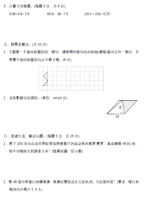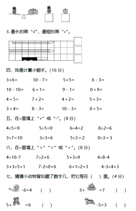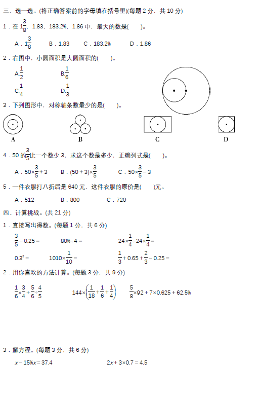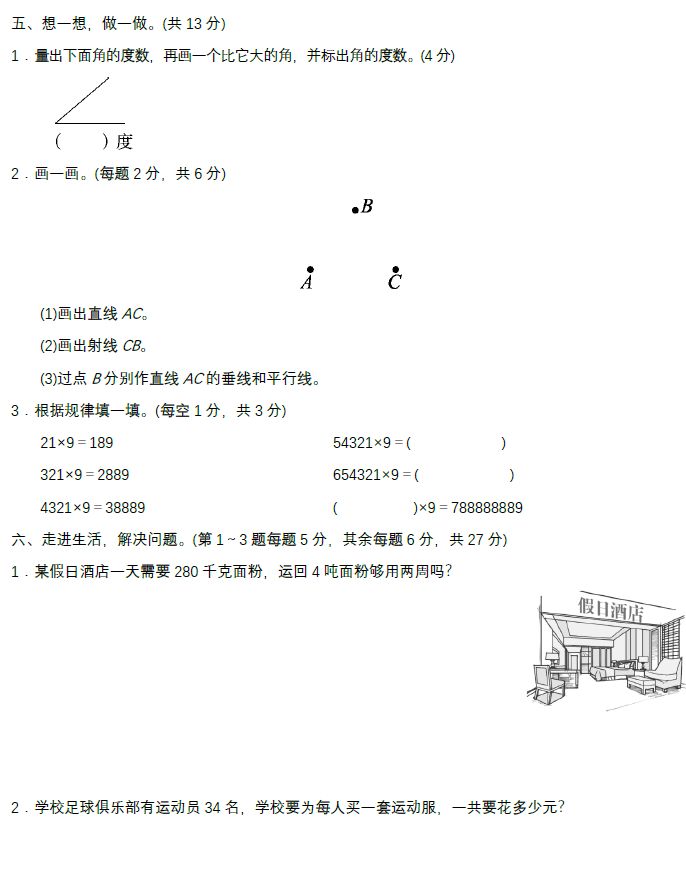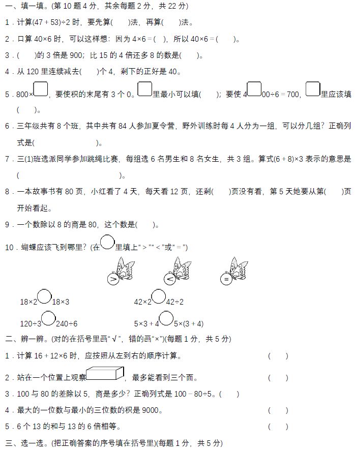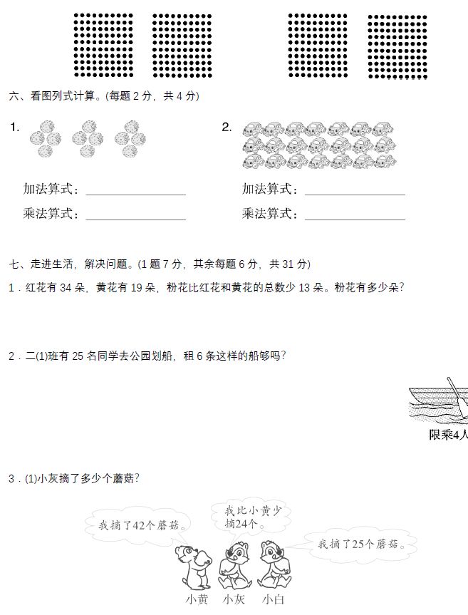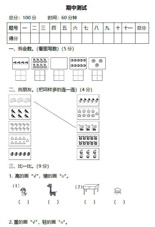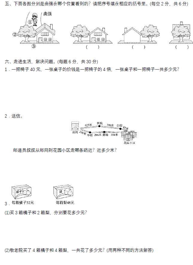 北师大版1-6年级数学(上)期中测试卷③及答案