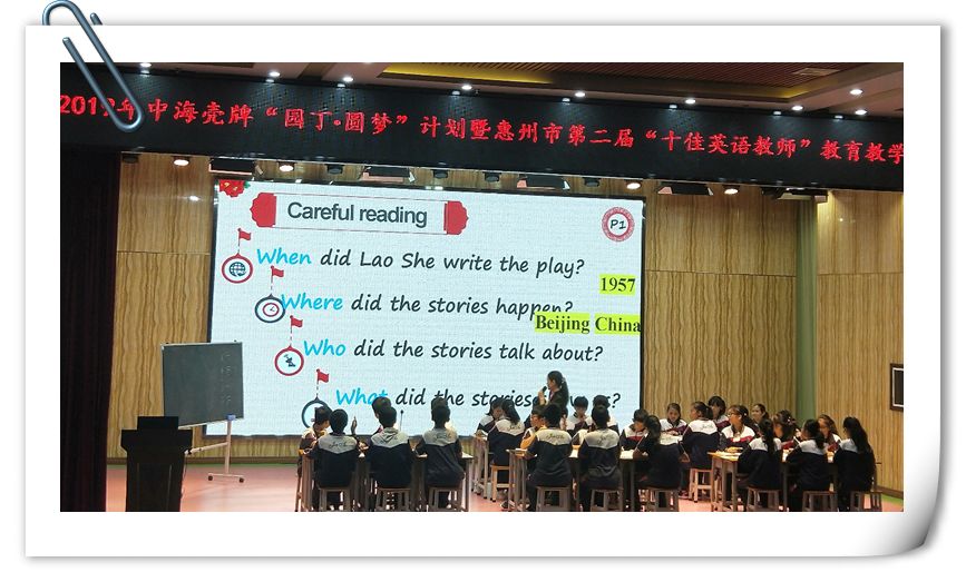 2019年10月25日9:00-12:00,初中英语组在金澳参加惠州市“十佳英语教师”分享活动。