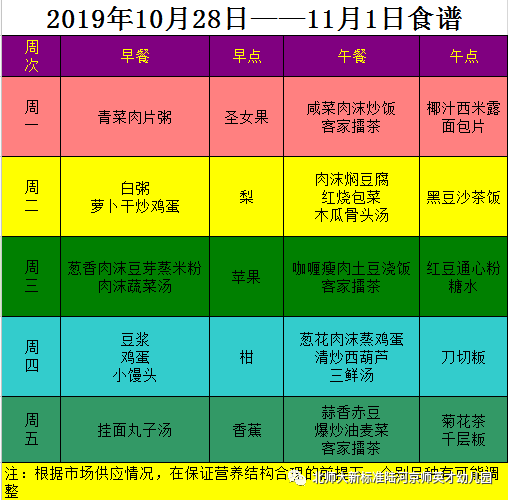 北师大新标准陆河京师英才幼儿园2019年秋季班第9周食谱