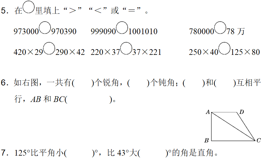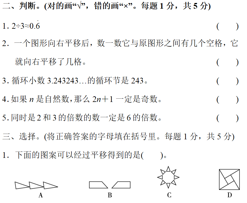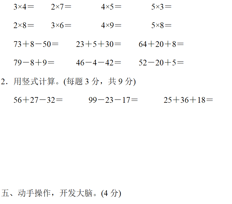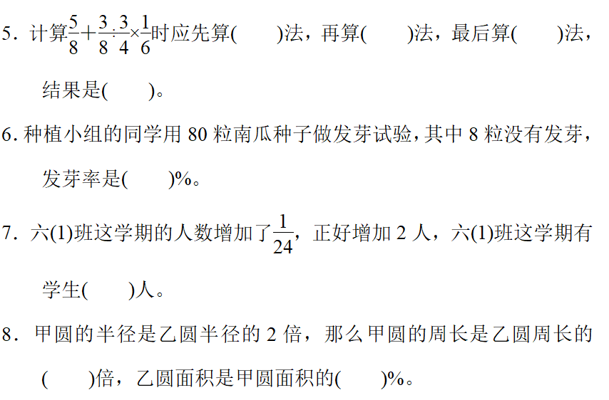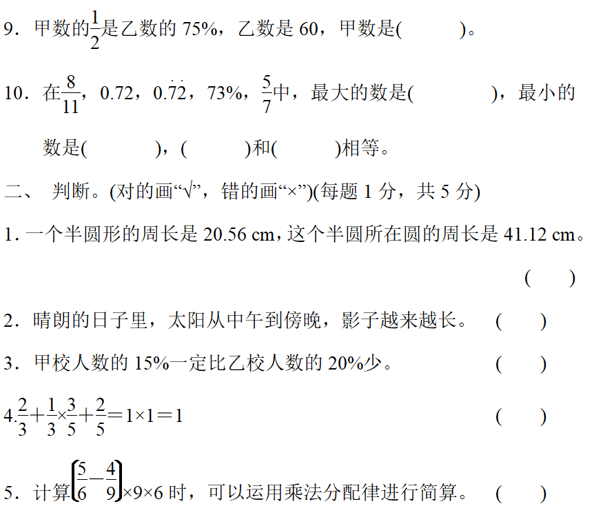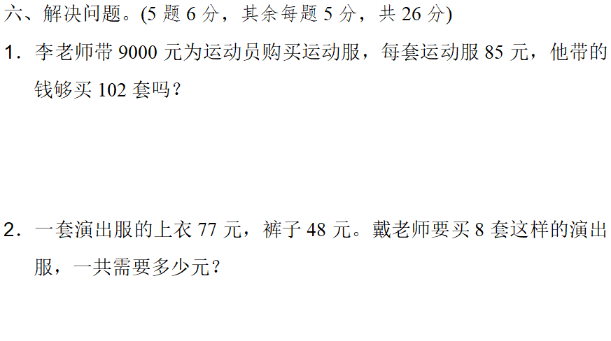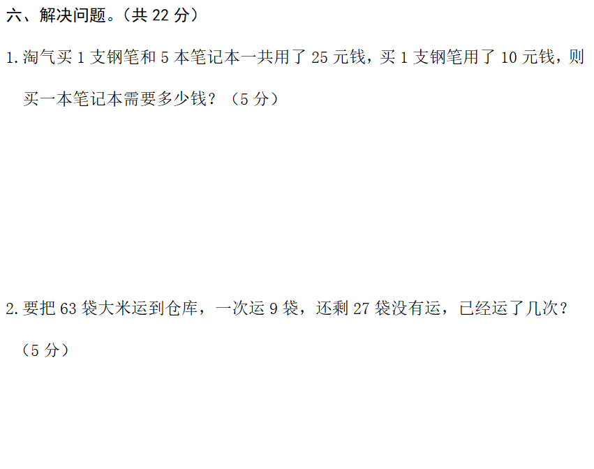 6、人教版小学数学1至6年级上册第三单元测试卷(可下载)