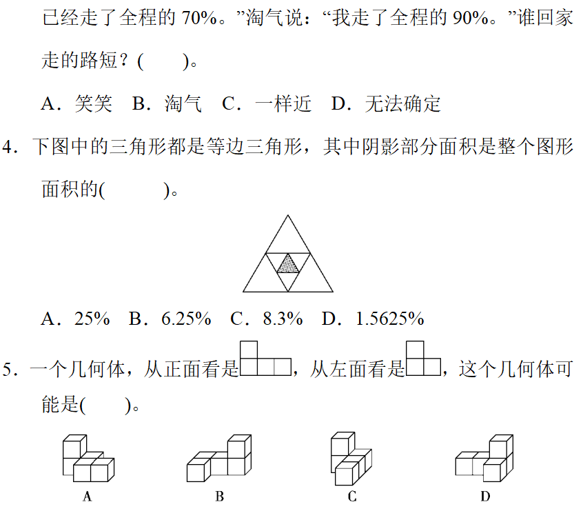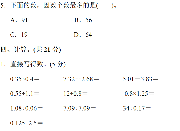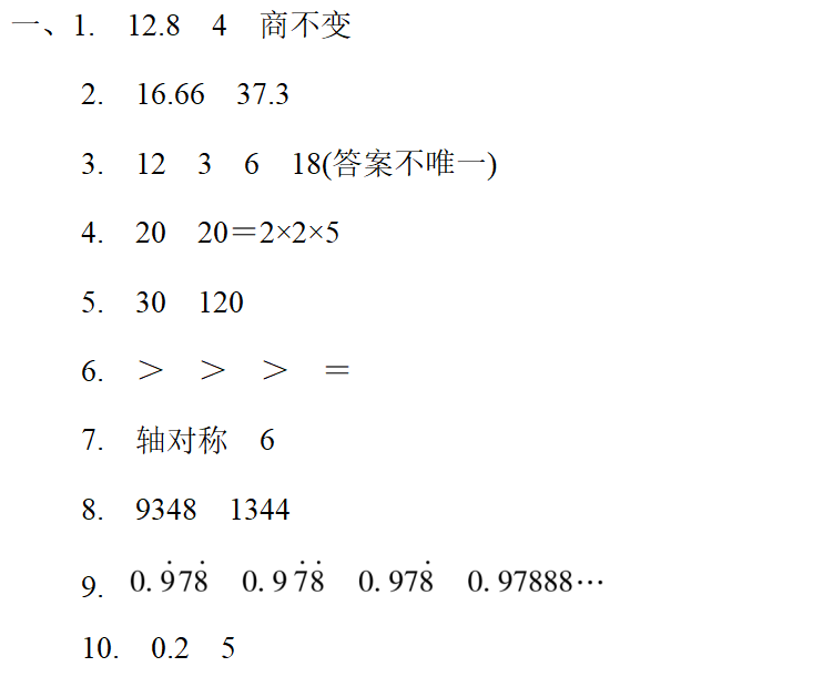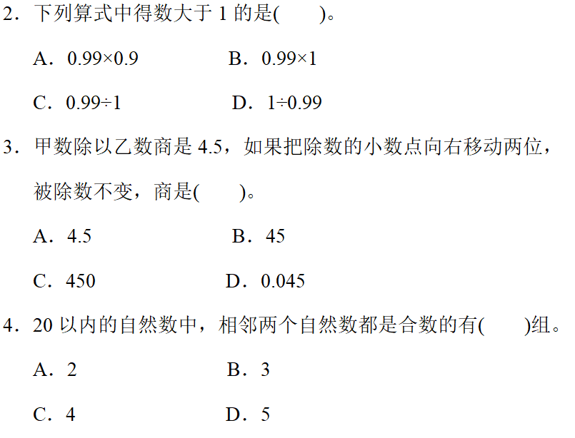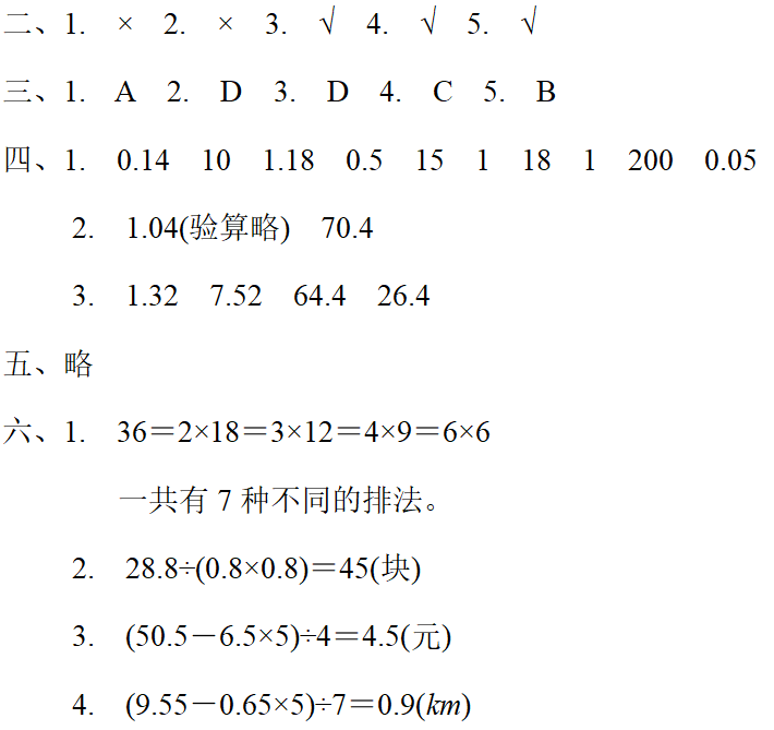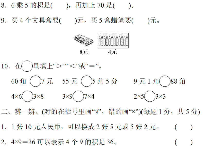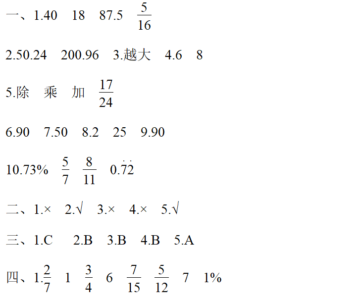 10、人教版小学数学1至6年级上册期中试卷(可下载)