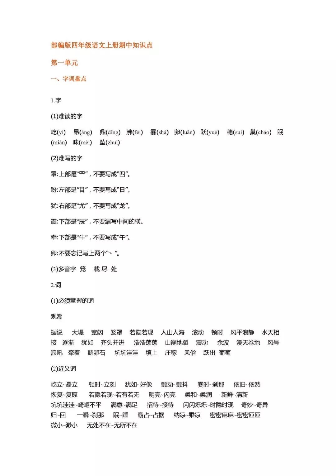 最近有不少同学反映,期中考试越来越近,光有试卷,没有知识点的汇总,大家复习起来还是很没有头绪。别担心,老师提前一个月就开始为大家准备这份知识点汇总资料啦,多看看,多练习,你的期中考试一定能顺利过关的。