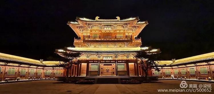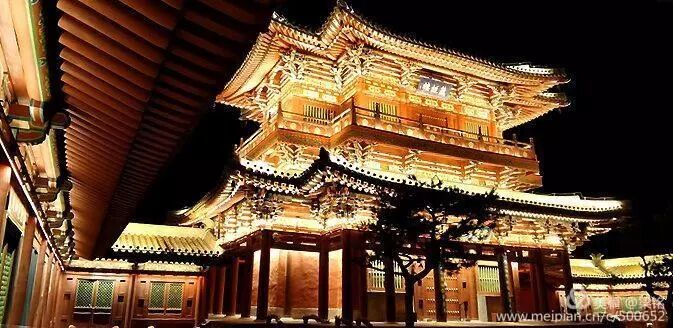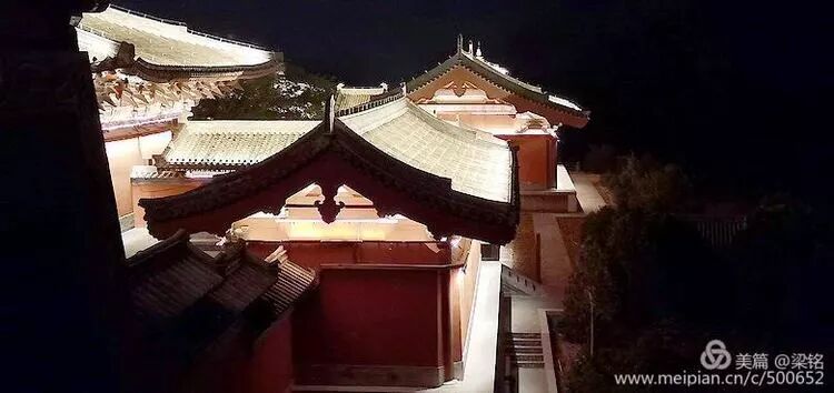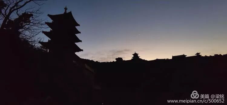夜色,渐渐地笼罩了山峦,我开始了夜色中的山路行走,去拍摄灯光下中的建筑。金碧辉煌的建筑,在近两个小时的梦幻中,好似梦回大唐的胜景。光影之下,留下了我的感觉、我的记忆和我的联想。带着疲惫的身躯,很快的陷入了晃如隔世的梦境......
