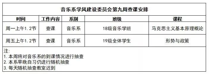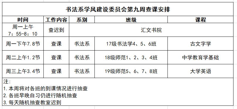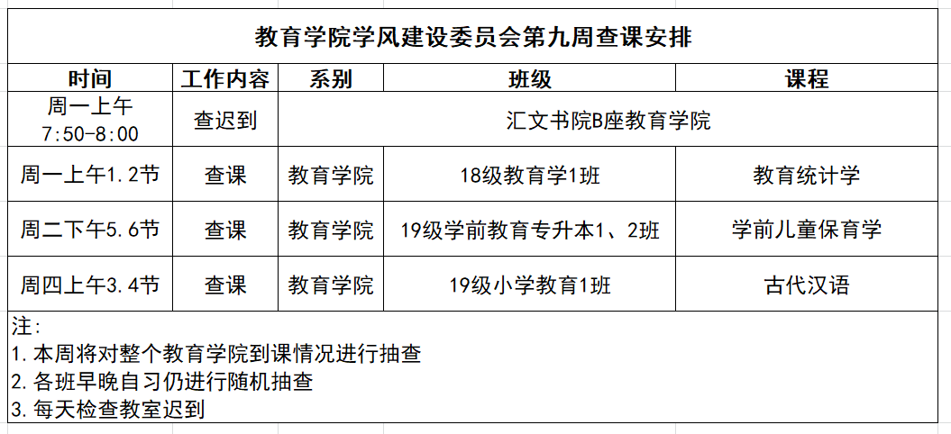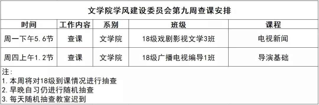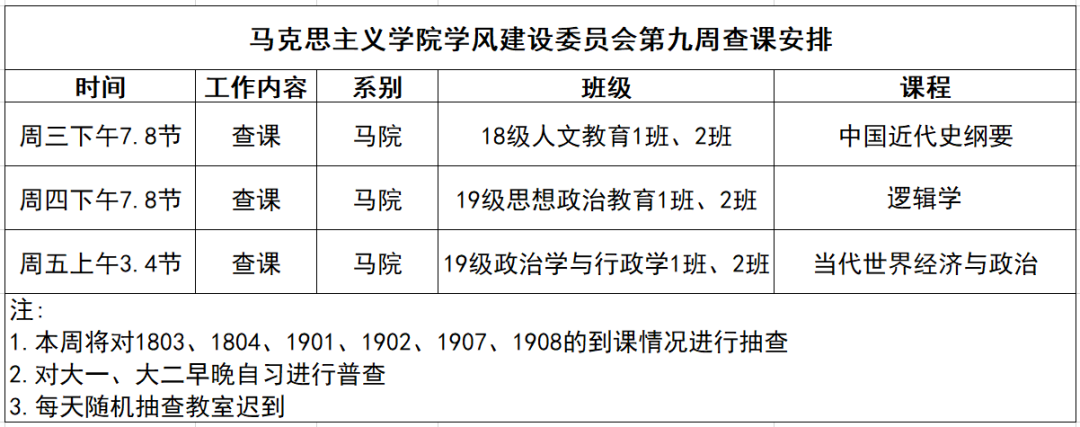 通知 | 太原师范学院学风建设委员会第九周查课安排