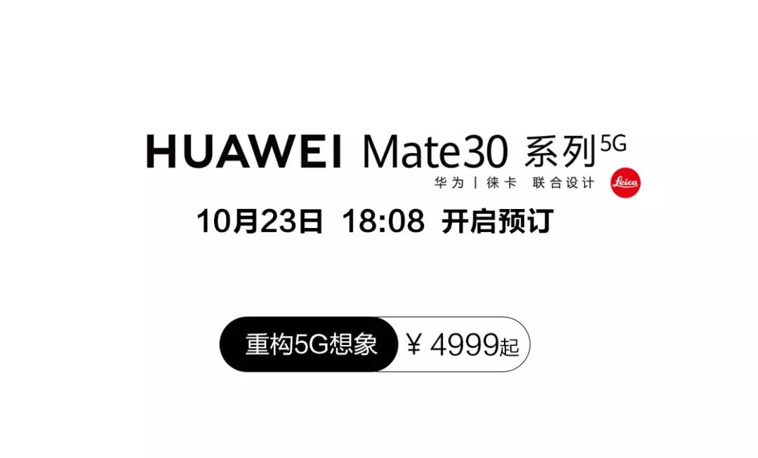 全球首款第二代5G手机?HUAWEI Mate 30系列5G版也将于同一时间,正式开售HUAWEI Mate 30 5G8GB+128GB:4999元8GB+256GB:5499元HUAWEI Mate 30 Pro 5G8GB+256GB:6899元8GB+512GB:7899元白山程信手机卖场店开启预售,就在今天?