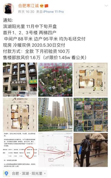 微博爆料:包河区滨湖阳光里11月中旬开盘,首开1#、2#、3#3栋楼,下月初验资100万,全款才能买!售楼部放风价1.6万/㎡(zf限价1.45w看公关)
