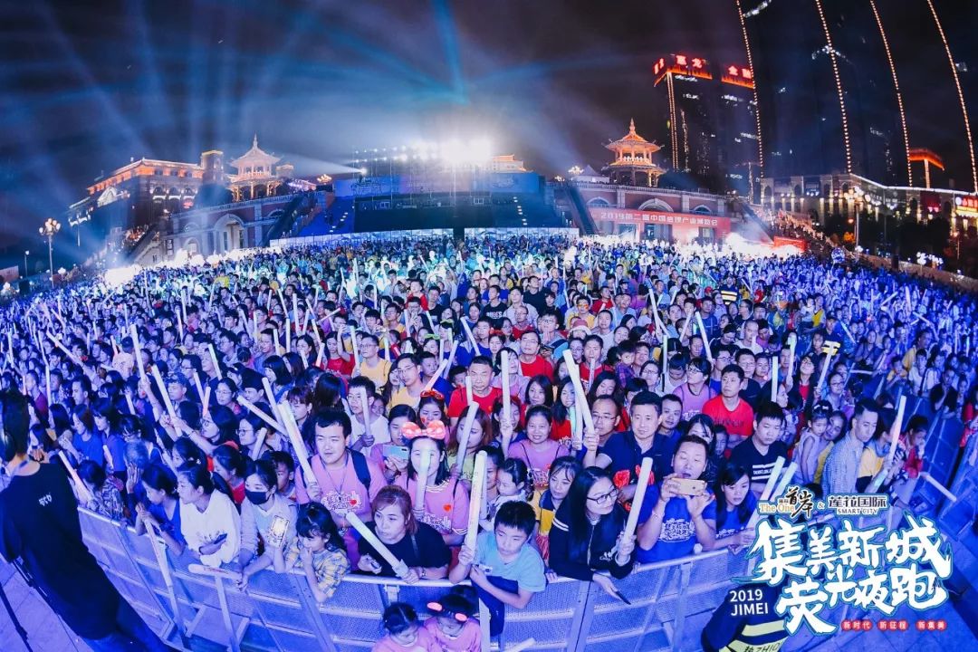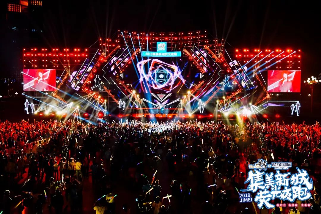 晚上7点万名跑者化身集美“发光体”用脚步丈量新城最美风景线与往届不同的是本次夜跑用光影表达感恩献礼新中国成立70周年和夜跑5周年近距离地参与到光影秀中展现集美人民欢庆新中国70华诞的情怀