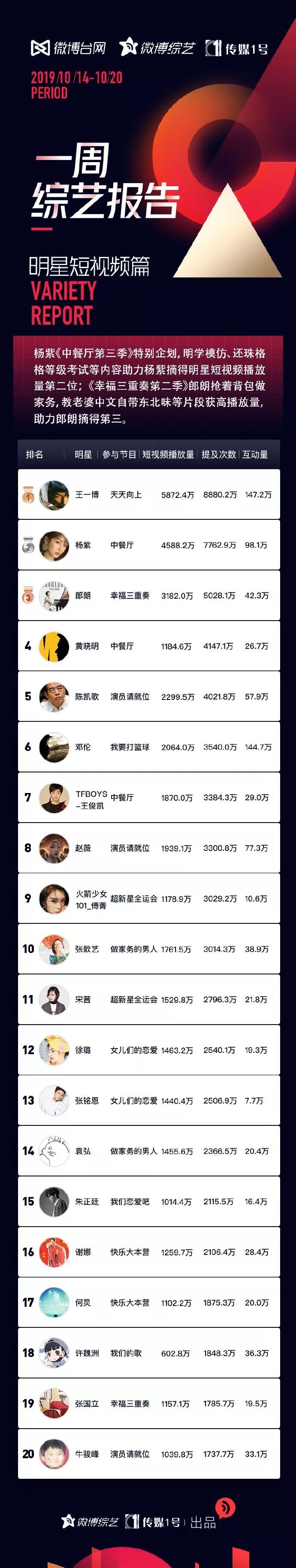 传媒1号携手微博联合推出全新版《一周综艺报告》,独家解读一周综艺变化趋势。