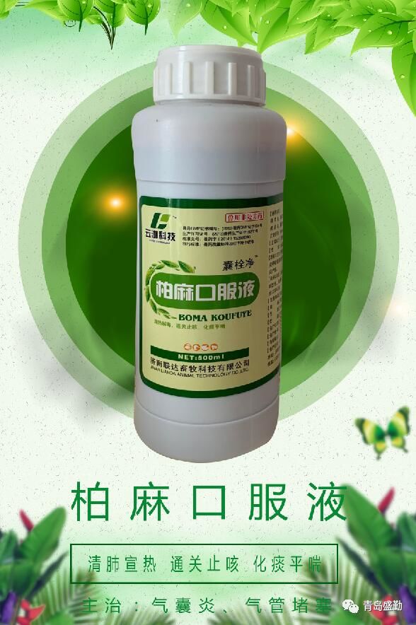 最近很多鸡场普遍出现咳嗽不肯好,用很多遍呼吸道药都不见好,引发肺炎,肺坏死,气囊炎,等严重气管栓塞问题,吃料慢!建议赶紧用~ 柏麻口服液 清肺宣热、通关止咳、化痰平喘。用于家禽气囊炎呼吸道及支气管栓塞肺坏死的治疗。