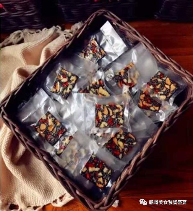 阿胶250克、冰糖150克、黑芝麻400克、黄酒500克、核桃250克、枸杞125克、红枣250克