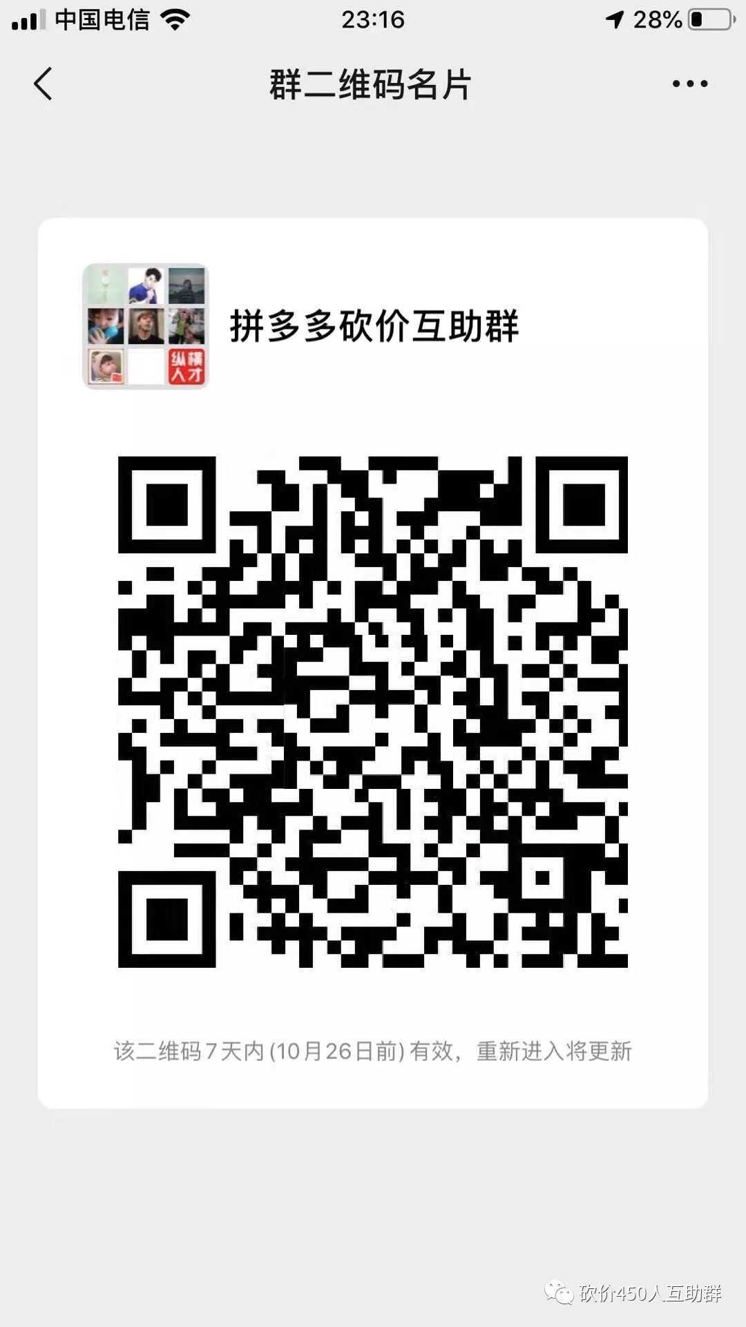 随着拼多多砍价现在越来越火,很多砍友们都加入了拼多多砍价大军,小编特意为大家准备了百人互砍群,团结就是力量!扫描下方二维码进群互砍吧!