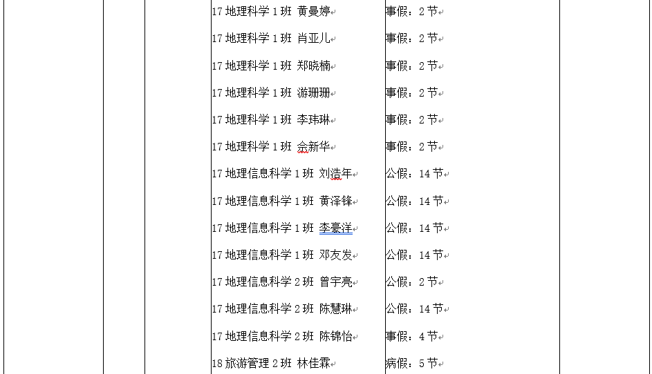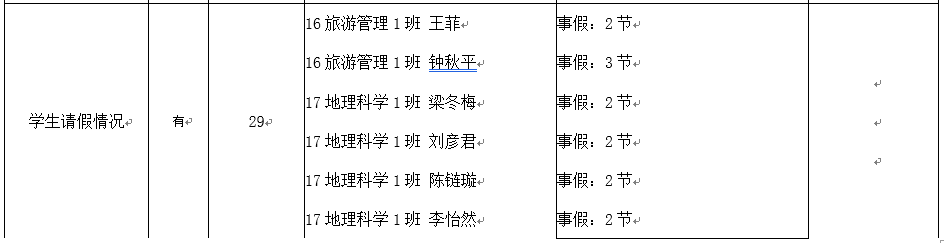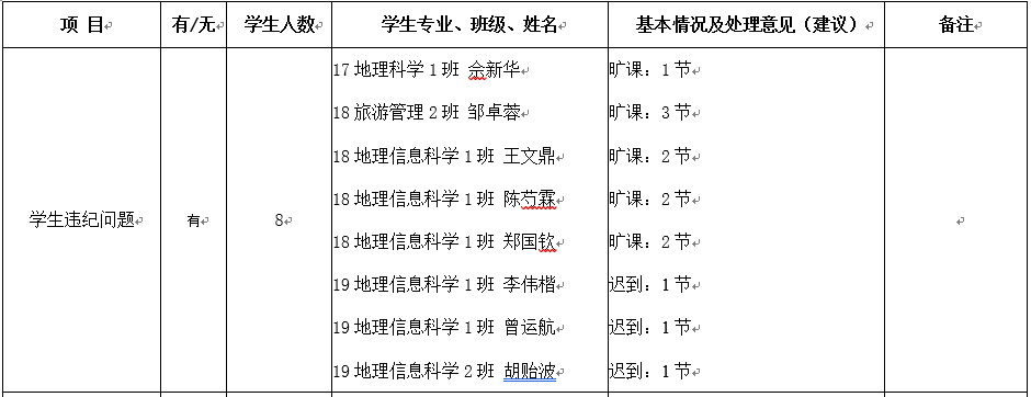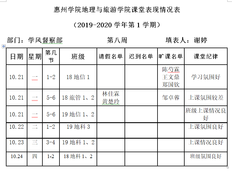 通知公示|地理与旅游学院第八周课堂表现情况表