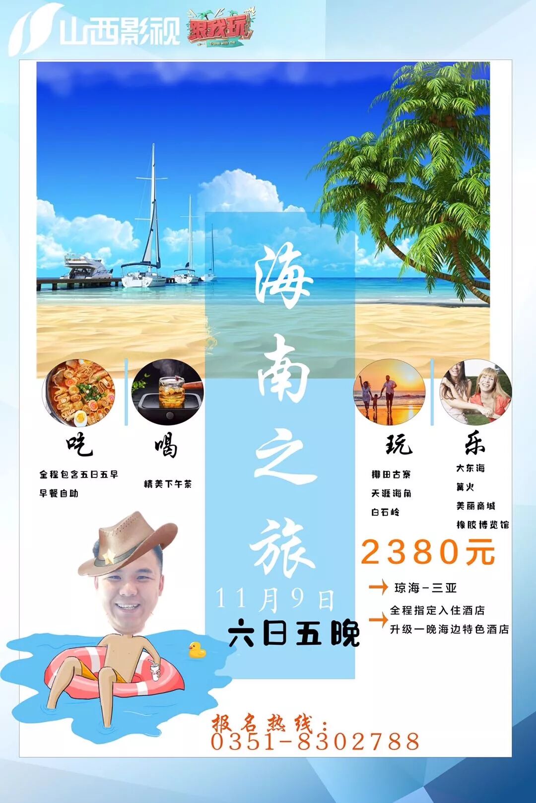 ◇ 海南之旅六天五晚,享受浪漫海滩。山西影视频道《跟我玩》重磅推出——海南之旅六日五晚,0自费
