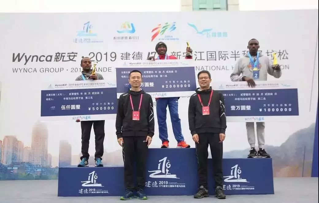 除了赛道设计颇有深意,首次举办半程马拉松,建德也是诚意满满,建德市文化和广电旅游体育局给予 2019 建德 17℃新安江国际半程马拉松的参赛运动员免门票优惠待遇。经过激烈角逐,最终获得建德半程马拉松男子组冠亚军的是来自肯尼亚的SIMON KIRUTHI MUTHONI、WANYOIKE PETER NDUNGU,成绩为01:03:26、01:04:58,男子组季军获得者是来自埃塞俄比亚的TIGABU GEBREMARYAM ASEFA;