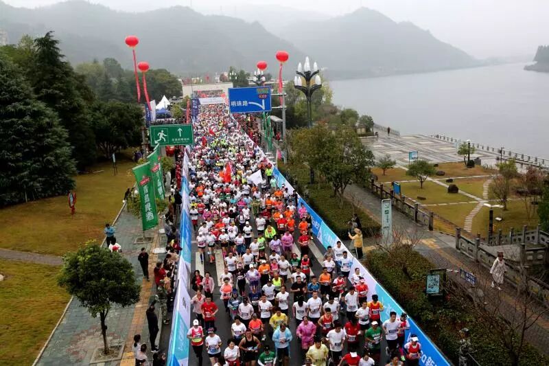 八点整,伴随着发令枪响,6000名选手浩浩荡荡的长跑队伍陆续从双江特色街出发,参加半程马拉松(21.0975公里)、微型马拉松(5.2公里)两个项目。曾任建德市委常委职务、两届世界皮划艇冠军孟关良、以及世界冠军、亚运会冠军、全运会冠军王铁鑫,建德市人民政府市长朱欢也一同参跑。