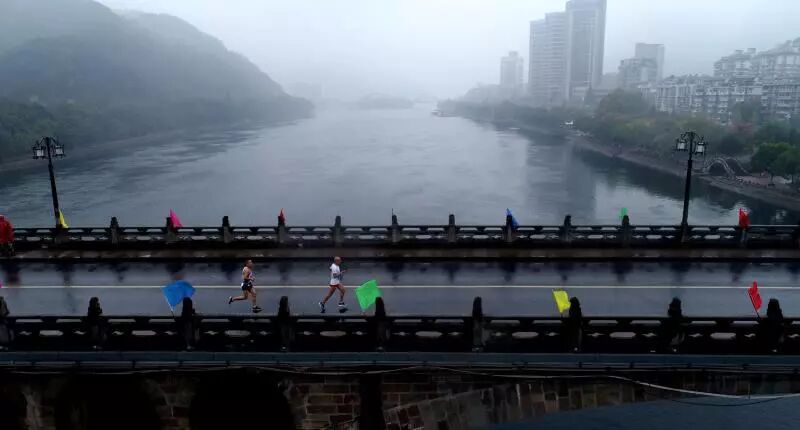 清晨,一阵缠绵的秋雨停歇后,烟雨朦胧的新安江江面薄雾缥缈,美得更加动人,来自全世界13个国家的6000名跑者齐聚在诗画山水新安江畔。