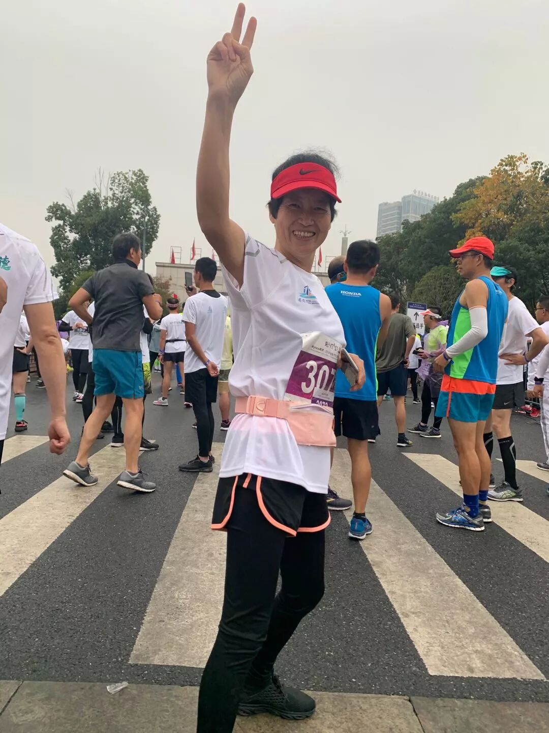 距离微型马拉松终点500米的地方,遇见一位满头卷发,穿着红色毛衣的王大姐,王大姐兴奋地说,我一路追一路追朋友圈播报的,今天早上到现在走了快20000步了,王大姐拿出手机给我看,跑在前六位的都是黑人选手,第七名是中国人,第八名是一个外国女选手。