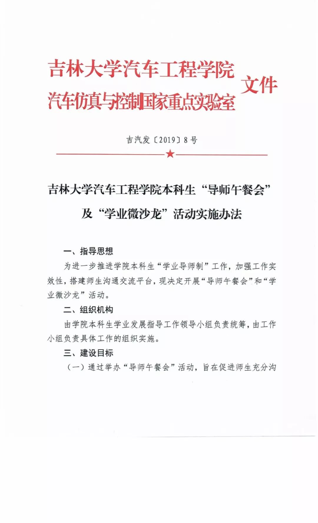 【通知公告】| 吉林大学汽车工程学院本科生 “导师午餐会”及“学业微沙龙” 活动实施办法