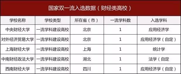 根据统计,目前我国财经类院校共有几十所,其中入选世界一流学科建设高校的高校共有5所,包括中央财经大学、对外经济贸易大学、上海财经大学、中南财经政法大学和西南财经大学,这些高校无疑代表了财经类院校的最高水平。