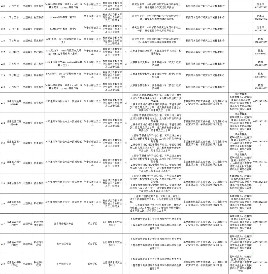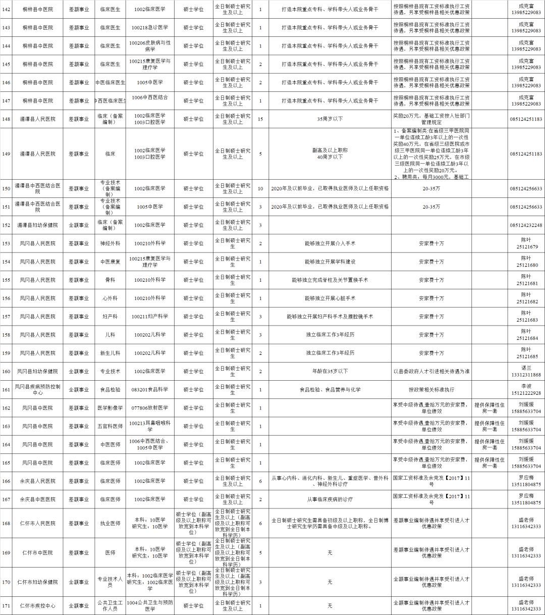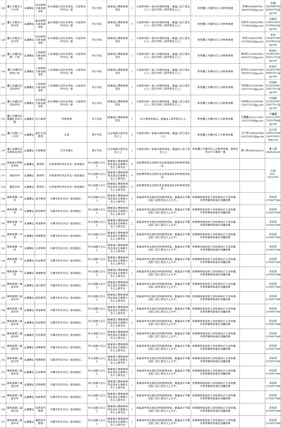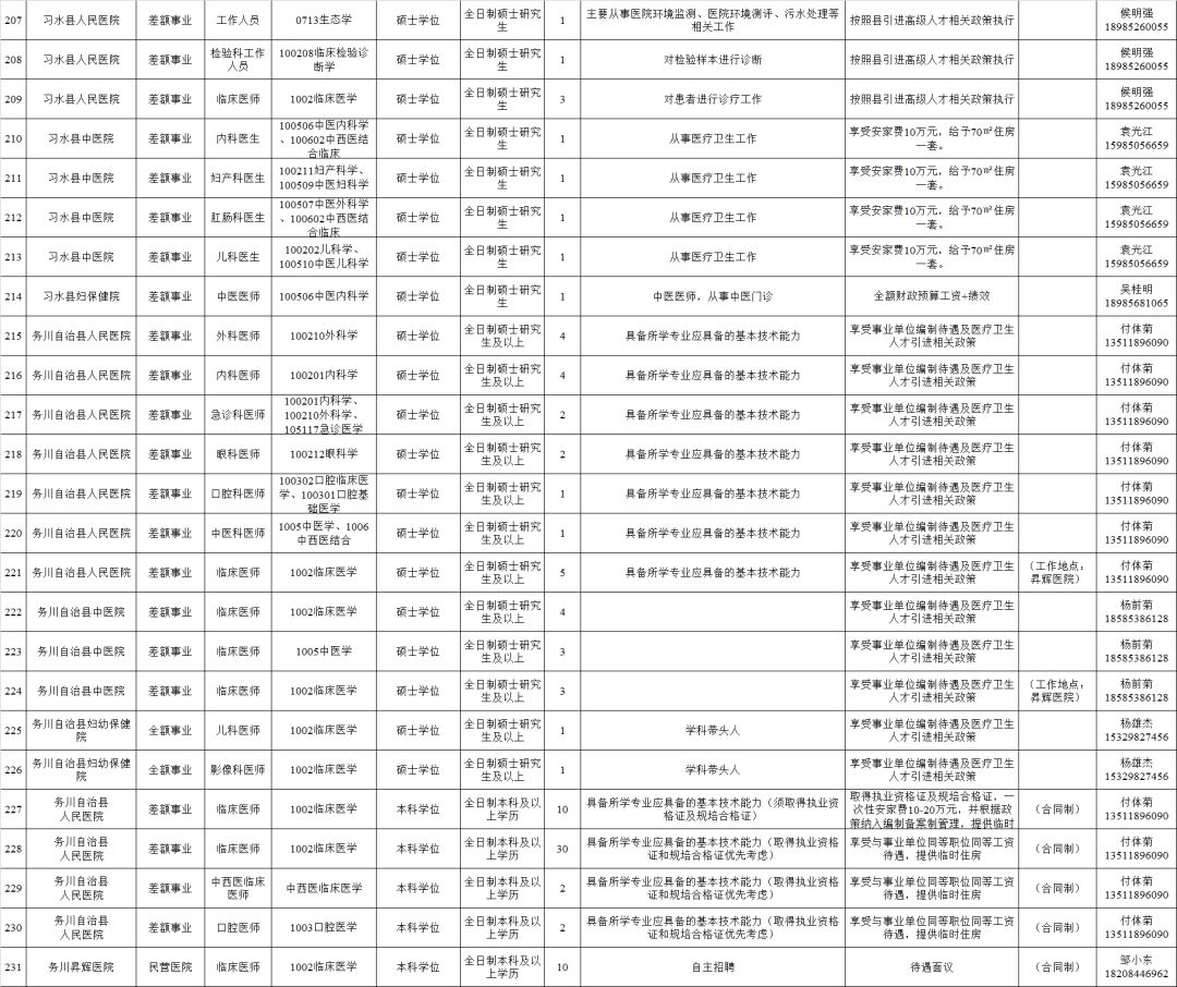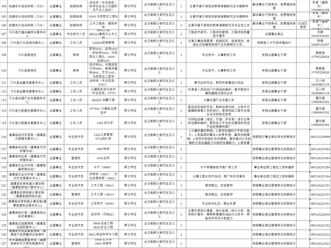 2.全日制普通高校2020年及以前毕业的拥有硕士研究生及以上学历和学位毕业生(含具有教育部认可的海外硕士研究生及以上学历学位人员)。(二)全市卫健系统计划招聘医疗卫生人员614名,其他事业单位计划招聘工作人员248名,招聘对象为全日制普通高校2020年及以前毕业的拥有硕士研究生及以上学历学位人员(含具有教育部认可的海外硕士研究生及以上学历学位人员)和职位对应的副高级及以上专业技术职务人员。(三)国有企业计划招聘工作人员128名,招聘对象为全日制大学本科以上学历的相关专业人员。招聘单位、岗位、学历、专业、职称、数量等具体条件详见附件1:《遵义市2019年赴高校招聘人才需求信息目录》。