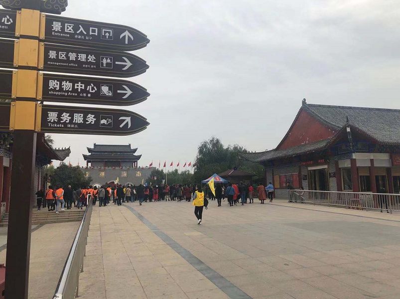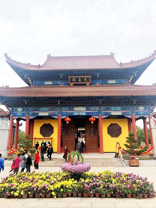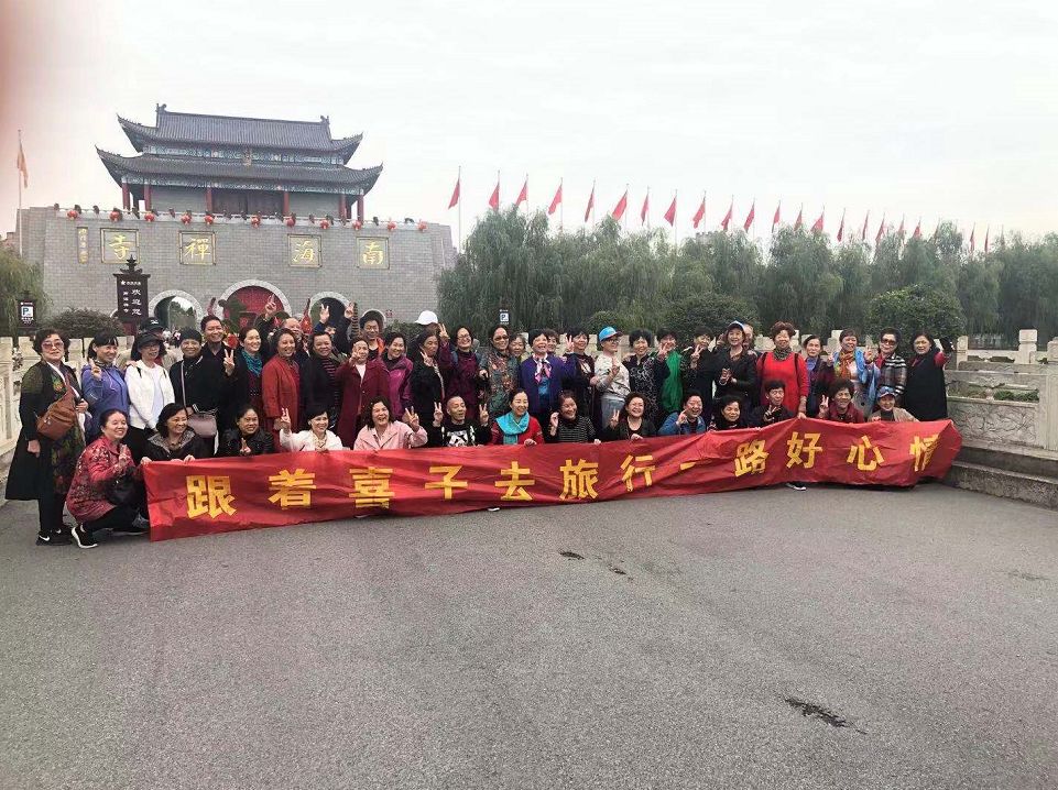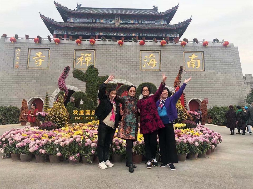 又经过一个小时的大巴车,我们终于到达第一个景点,南海禅寺。进入景区后,首先映入我们眼帘的是带有四个大字南海禅寺的城墙,在我们栏目组工作人员的带领下,大家簇拥在一起拿着我们栏目的横幅。拍下快乐的大合照。
