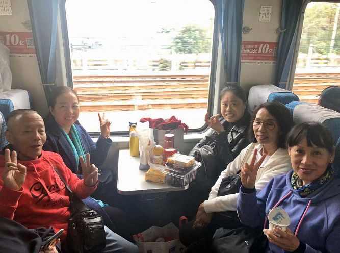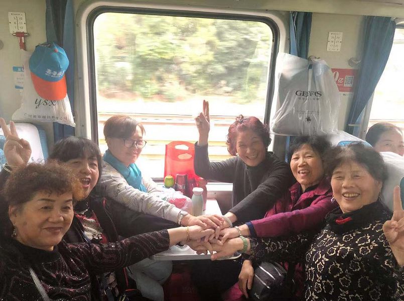 列车上,叔叔阿姨们有的欢声笑语,有的载歌载舞,有的休闲打牌,甚是悠闲自在,怡然自得。还有的叔叔阿姨带着自己的小孙子一起出来游玩,享受别样的亲情。