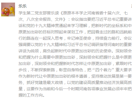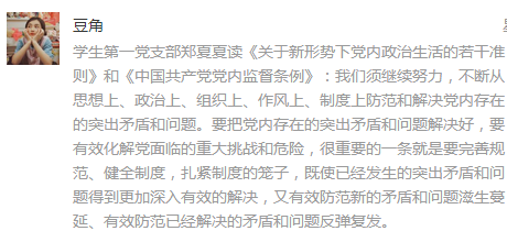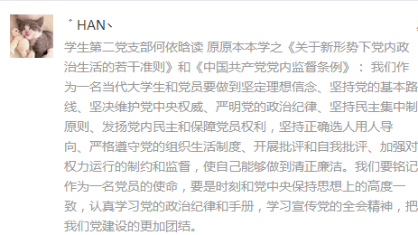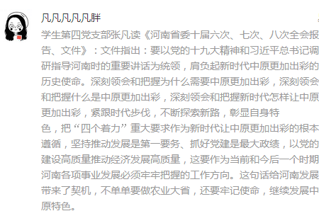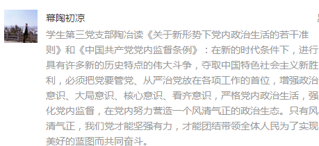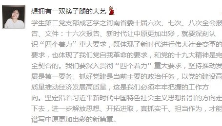 为深入贯彻学习习近平总书记在中央召开的“不忘初心、牢记使命”主题教育工作会议的重要讲话精神。博雅微党建持续推出原原本本学内容,大家认真学习,反响强烈,并在后台留言发表自己的感想感悟,现推出深入思考学之优秀评论,希望大家可以互相学习。