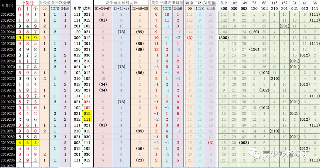 4. 黄金三路形态连续不直落。周期内回补明显。重点关注每期上次黄金三路的形态直落。