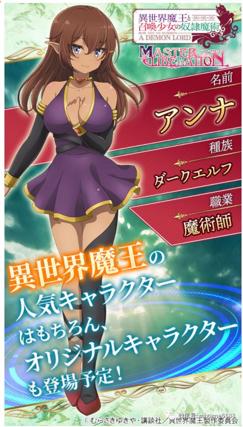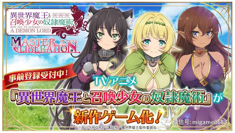 由CTW发行,以TV动画、轻小说《异世界魔王与召唤少女的奴隶魔术(异世界魔王と召唤少女の奴隶魔术)》为主题制作的全新智慧型手机游戏《异世界魔王与召唤少女的奴隶魔术-Master Liberation-(异世界魔王と召唤少女の奴隶魔术-マスターリベレーション-)》近日宣布开放预先注册。