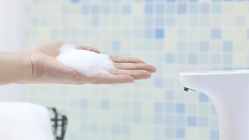 不用按不用挤,智能感应,自己就能哧哧哧涌出泡沫。仔细看,还特别细腻,简直跟奶油似的。