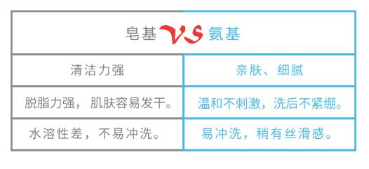 市面上大多数产品用的是皂基,清洁力出色,就是皮肤刺激性比较大,水溶性较差,而水溶性越差,越不容易清洗干净,容易残留。