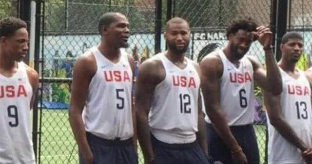 看看这杜兰特跟考辛斯和小乔丹站在一块,身高好像比他们都要高,其实后来杜兰特自爆自己的身高其实是2米13(穿鞋)这完全就是中锋的身高啊,但是杜兰特却是一直都打小前锋的位置,而且变态的是他打小前锋速度和对抗都不落下风,这让其他正常小前锋要怎么去防守你!