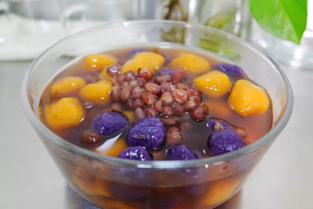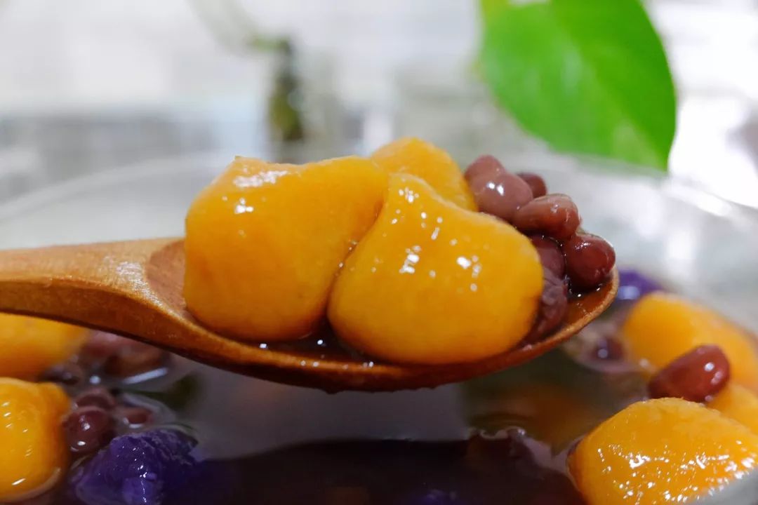 最后一个步骤,将晾好的红糖水浇在控好水的薯圆上,就可以吃啦~