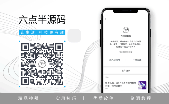 今天提到的这款软件,关注我的微信公众号「六点半源码」,回复关键词 191028 就可以获得下载链接。