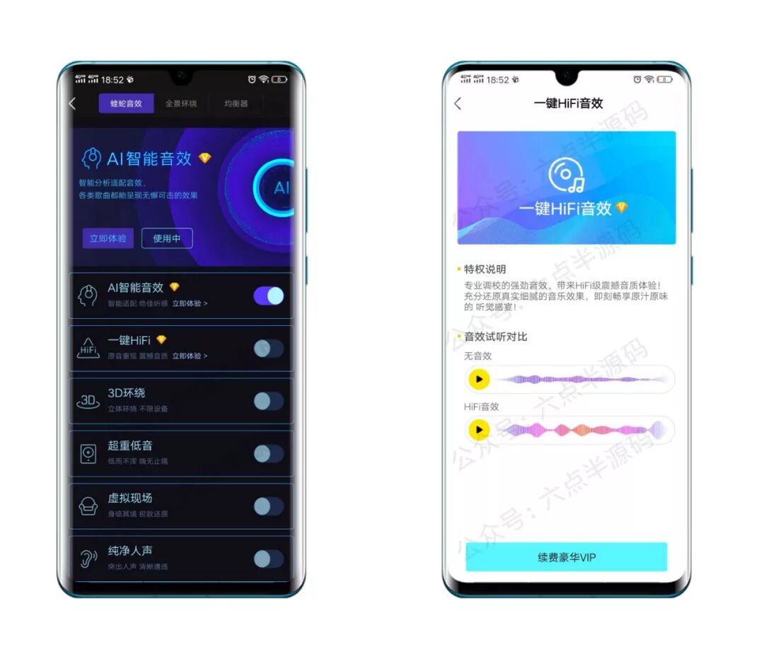 不仅如此,酷W音乐上还有一个超酷炫的新功能:HIFI音效。官方介绍:专业调校的强劲音效,带来HIFI级震撼音质体验!充分还原真实细腻的音效效果,即可畅享原汁原味的听觉盛宴!